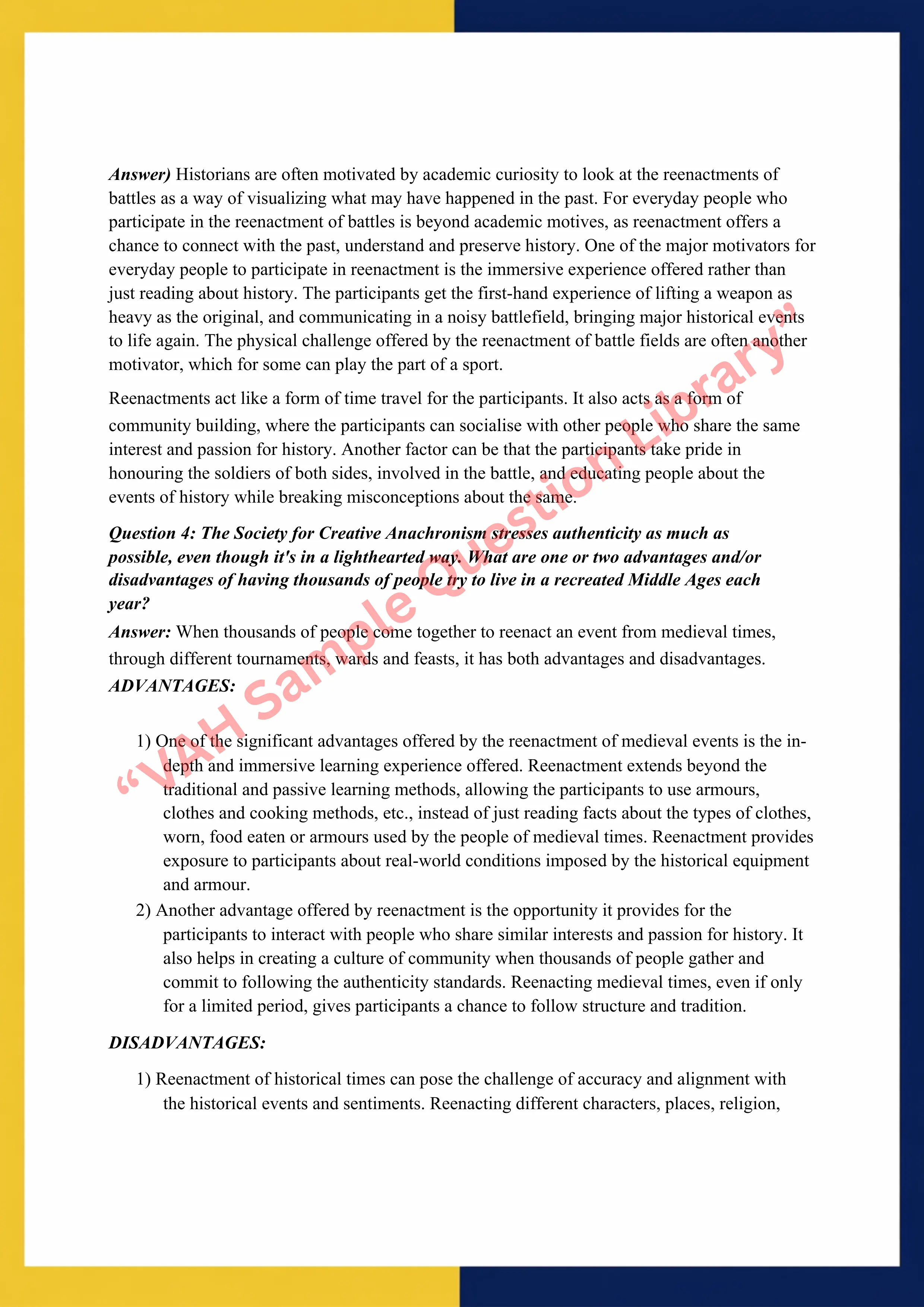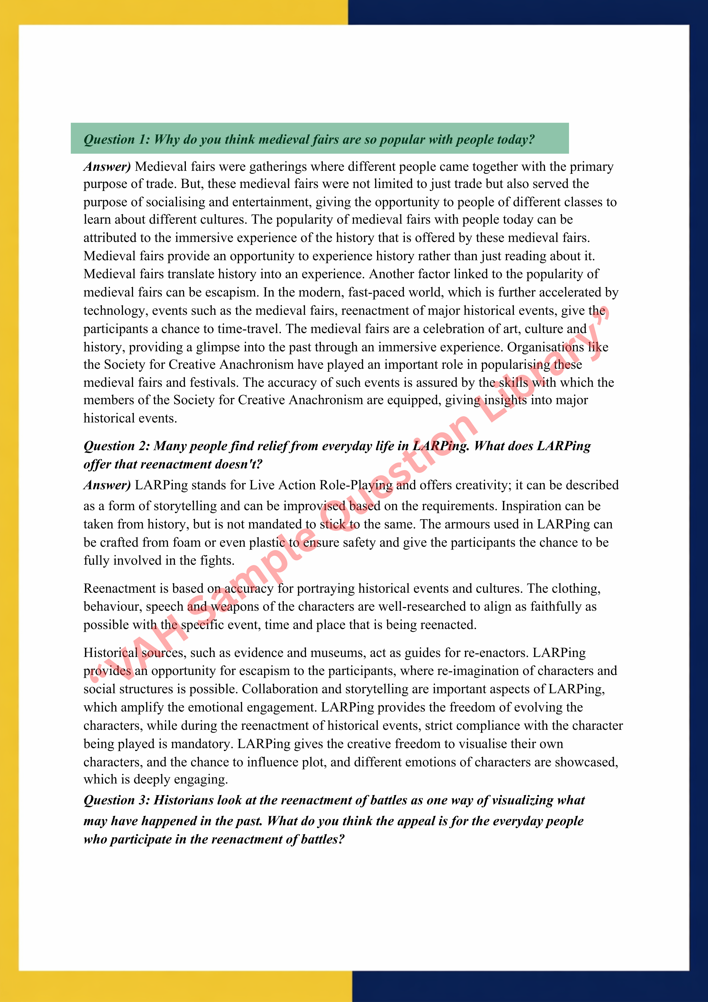Question 1: Why do you think medieval fairs are so popular with people today?